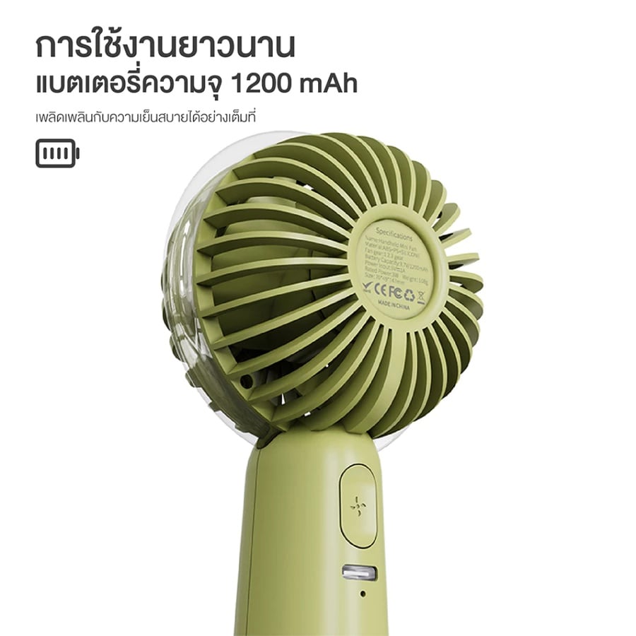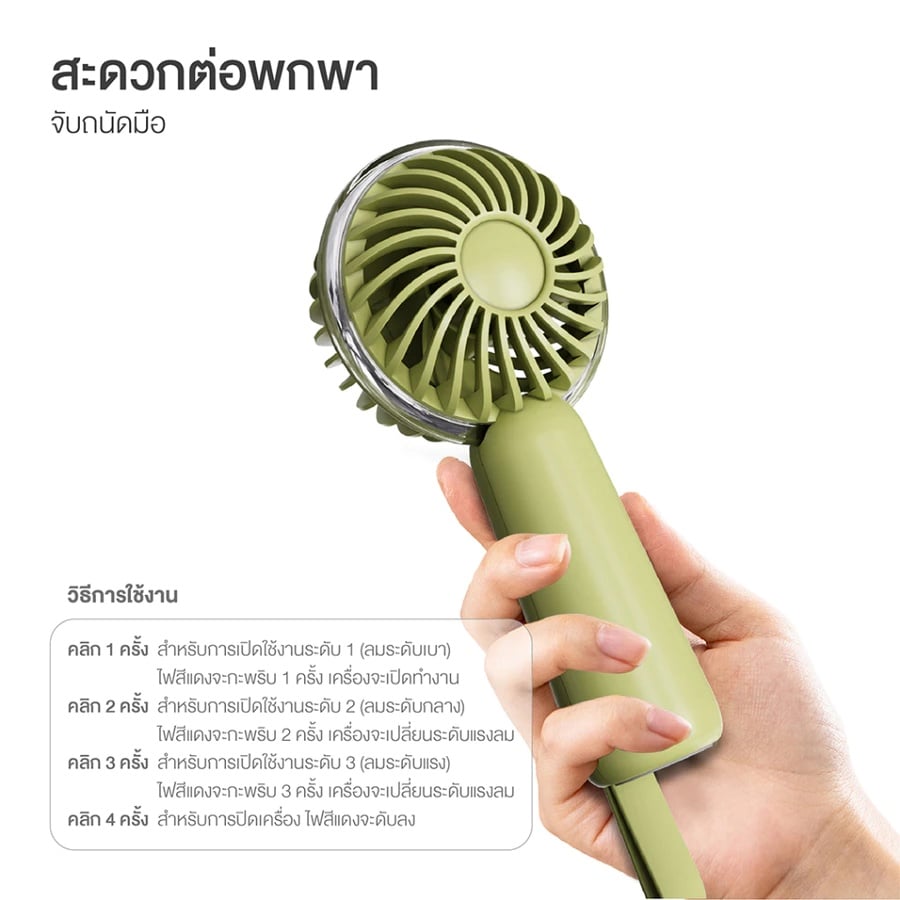 ACMIC พัดลมพกพา Mini Turbo Fan แบตเตอรี่ 1200mAh น้ำหนักเบา พกพาง่าย ปรับความแรง 3 ระดับ สีเขียว