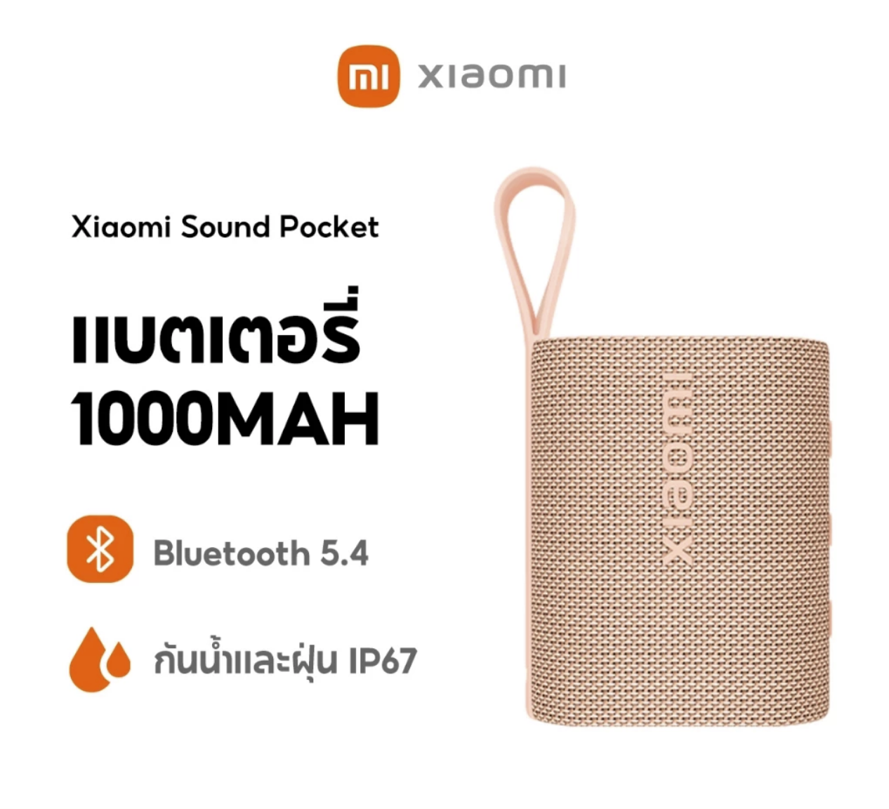 Xiaomi Sound Pocket 5W Portable ลำโพงบลูทูธ Bluetooth 5.4 กันน้ำและฝุ่น IP67 แบตเตอรี่ 1000mAh สีชมพู