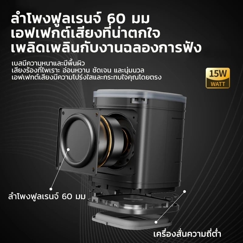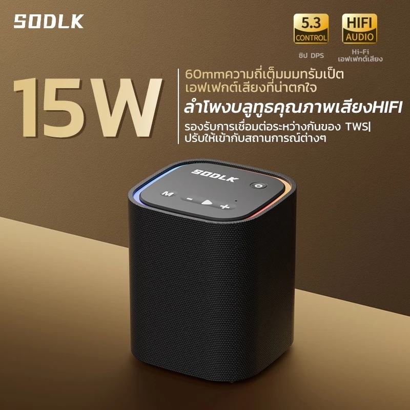 ลําโพงบลูทูธไร้สาย HIFI 15W เอฟเฟคเสียงสเตอริโอ กันน้ำ IPX5 แบบพกพา