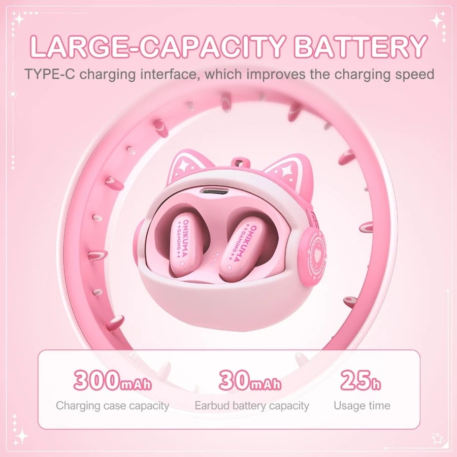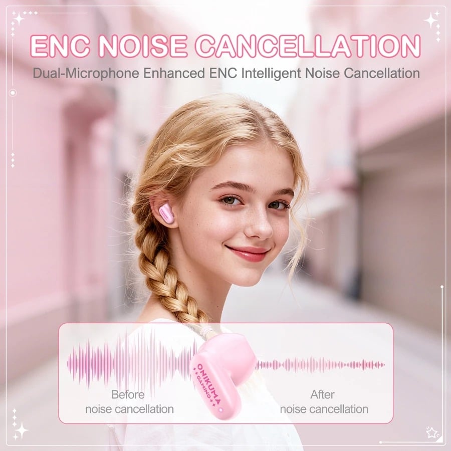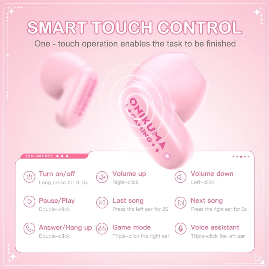 ONIKUMA TWS ชุดหูฟังสําหรับเล่นเกม Bluetooth 5.4 สีชมพู