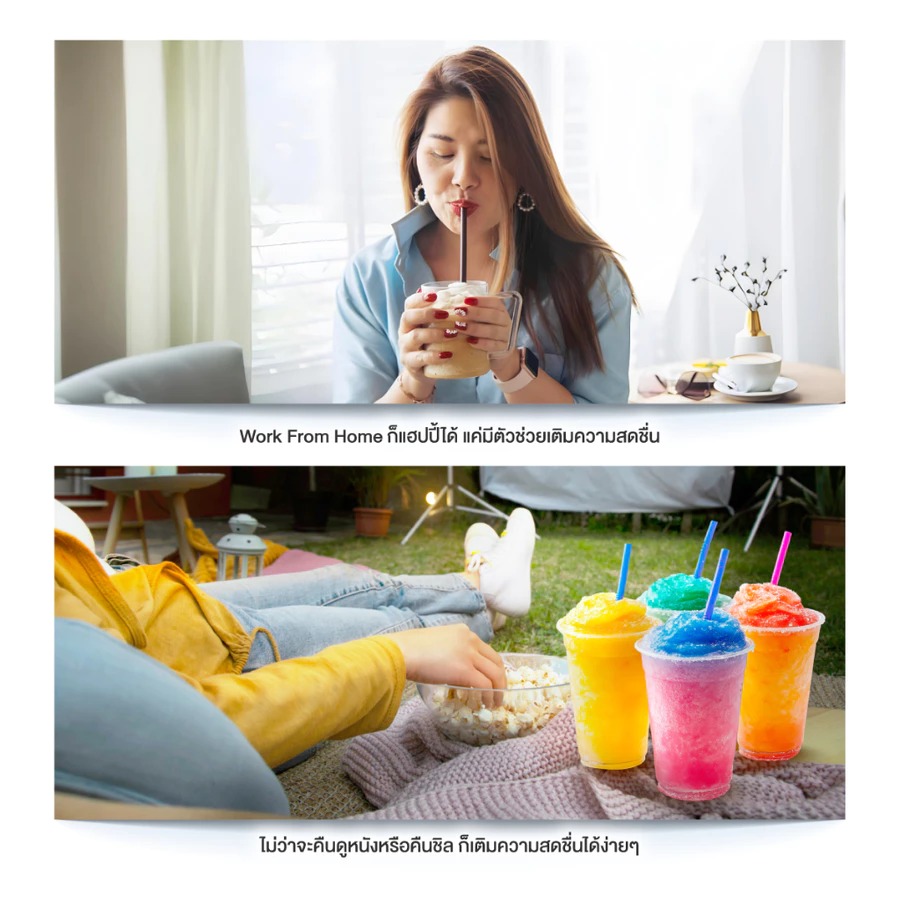 *1.9 ลิตร คือปริมาณสูงสุดที่เติมได้ จำนวนแก้วที่ทำได้จริงขึ้นอยู่กับขนาดของแก้วและส่วนผสมที่ใช้