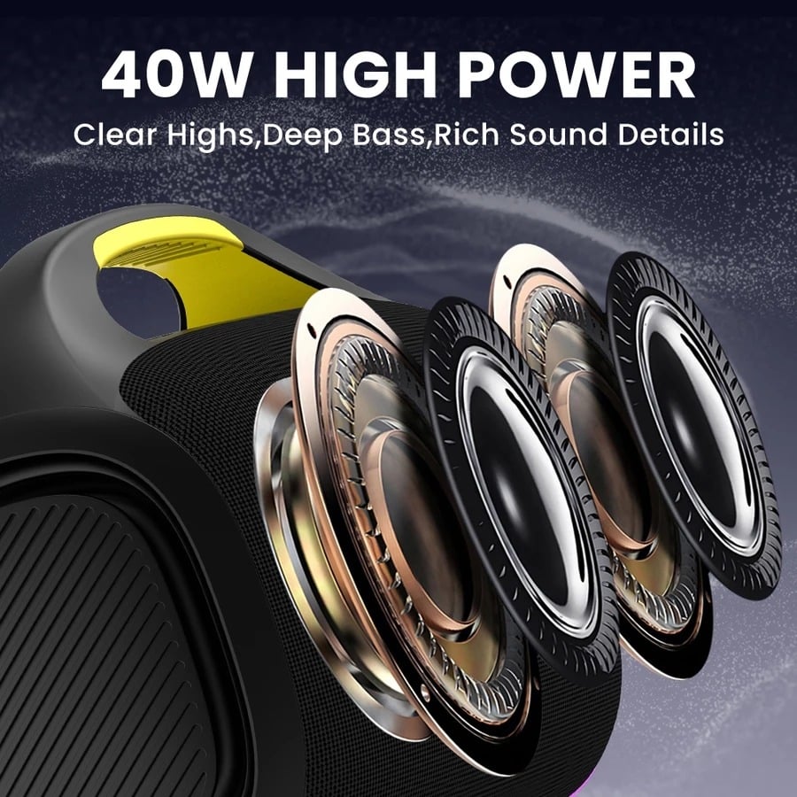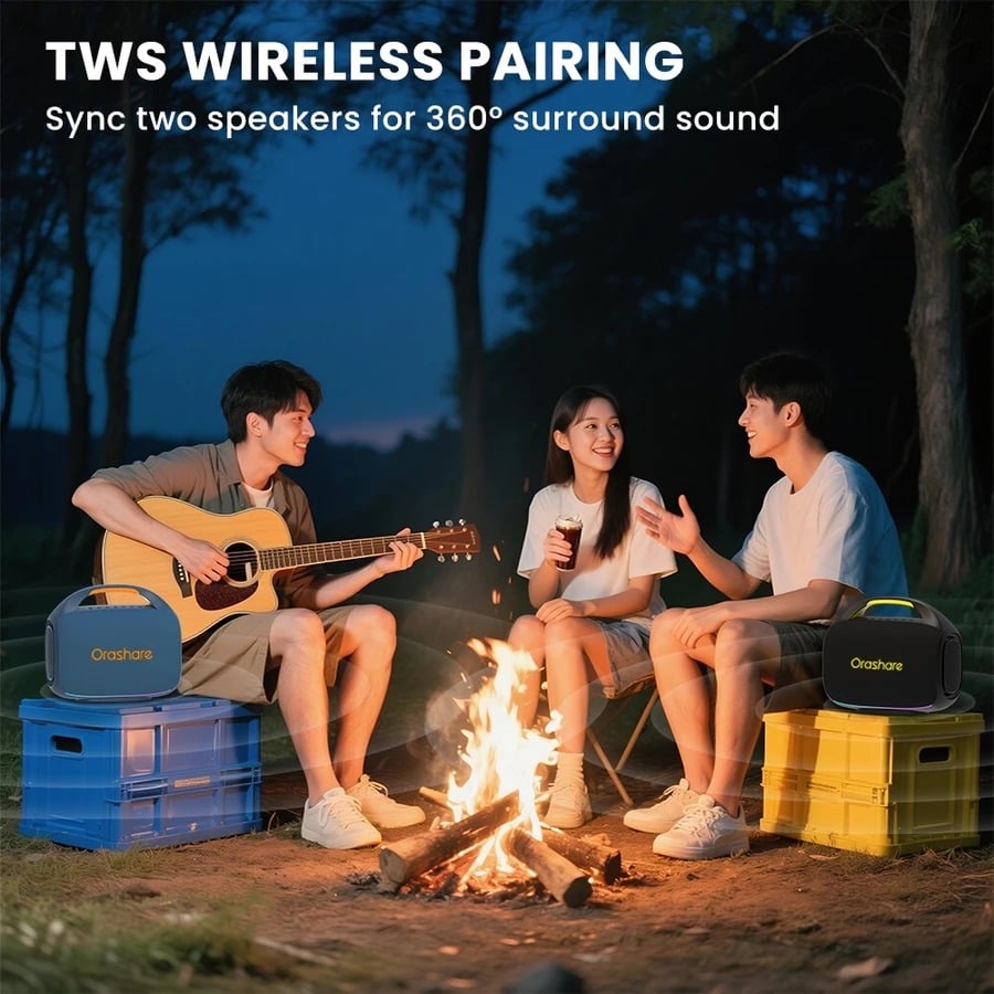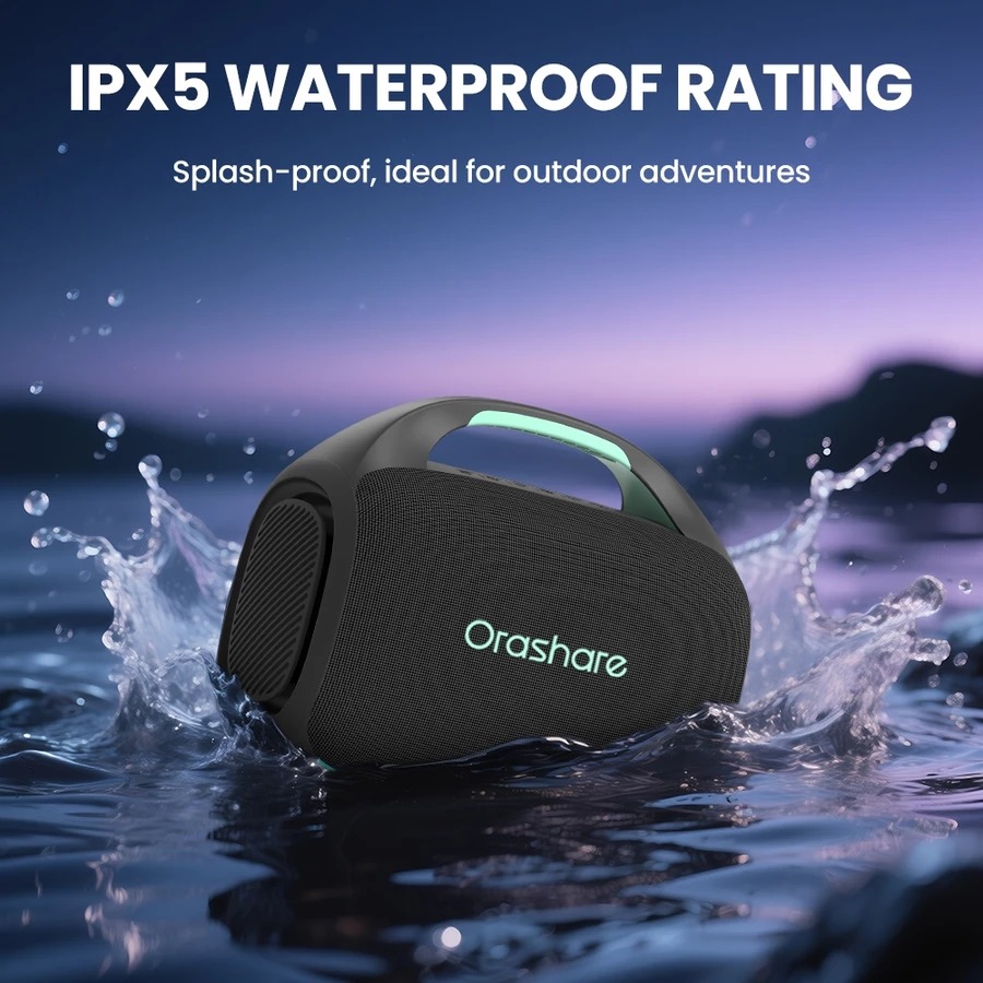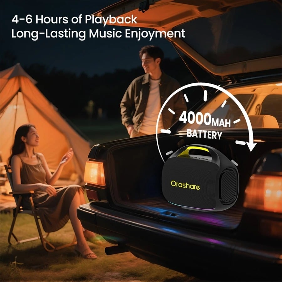 Orashare S08 MAX ลําโพงบลูทูธ เบสหนัก แบตเตอรี่ 4000mAh พร้อมไฟ RGB กันน้ำระดับ IPX6 สีดำ