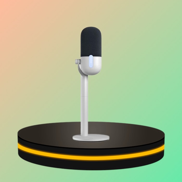 - มาพร้อมขาตั้งโต๊ะแบบสูงทำให้รับเสียงได้ดีขึ้น