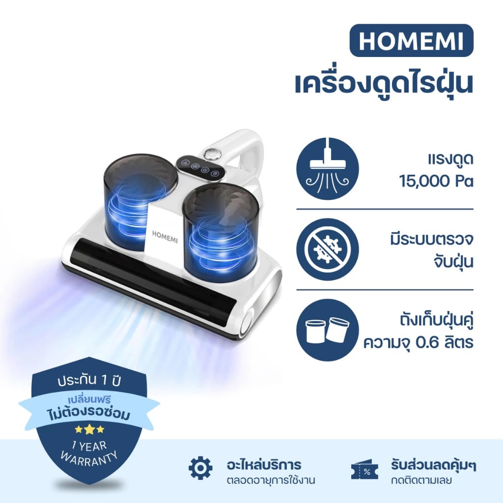 มีระบบตรวจจับฝุ่น ถังดูดฝุ่นแบบคู่ พร้อมฆ่าเชื้อด้วยแสง UV