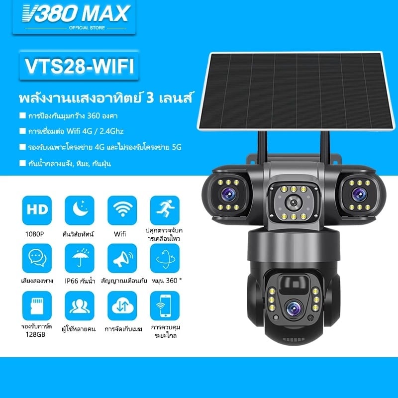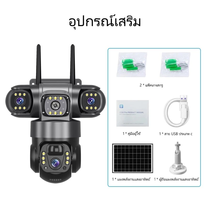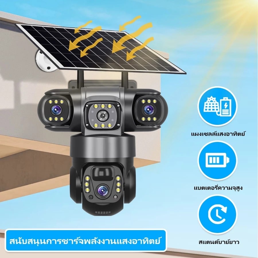 กล้องวงจรปิด พลังงานแสงอาทิตย์ 3 เลนส์ WiFi