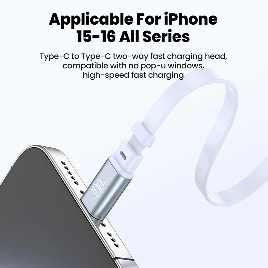 หัวชาร์จ ขนาด 100W พร้อมสายชาร์จในตัว สีฟ้า